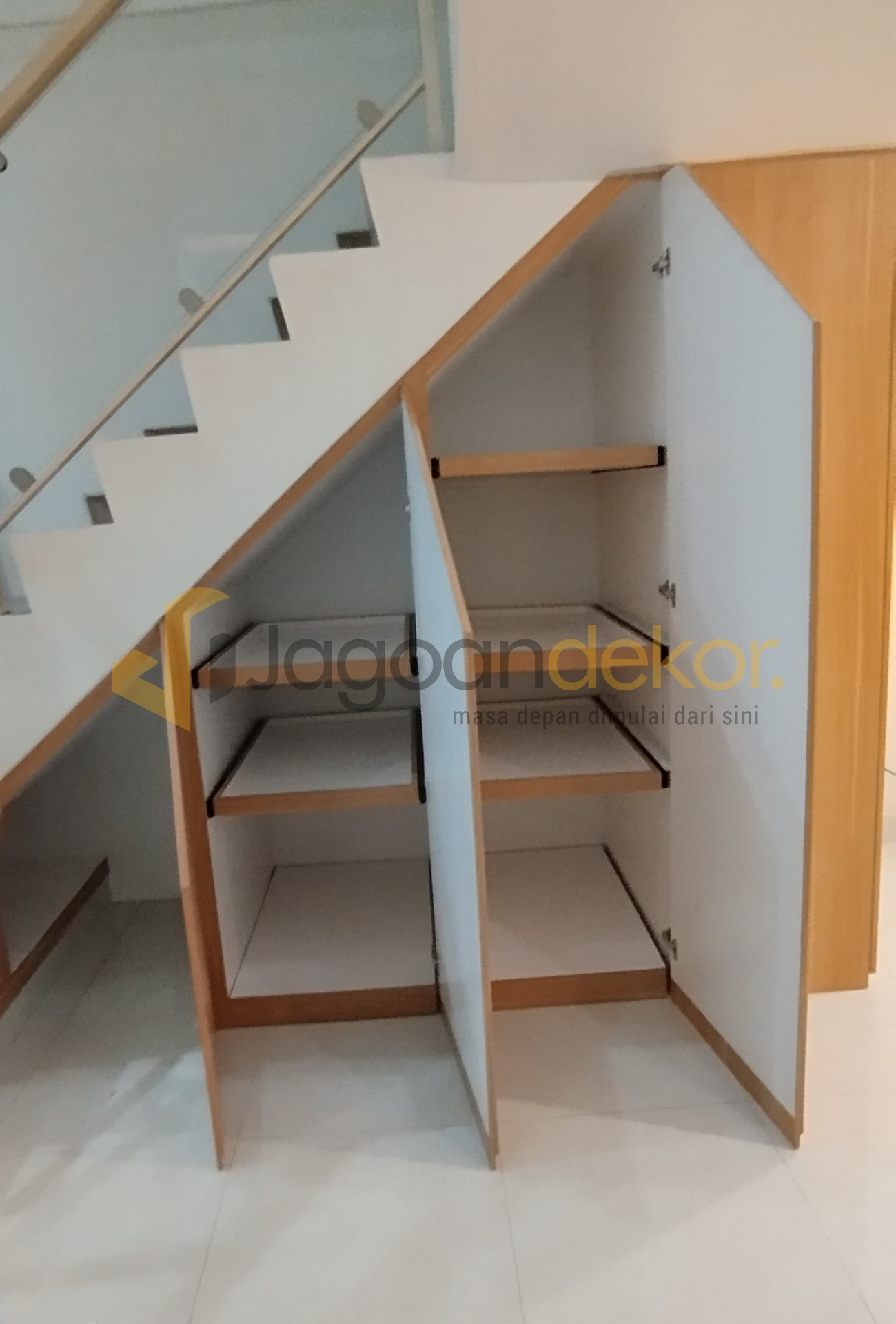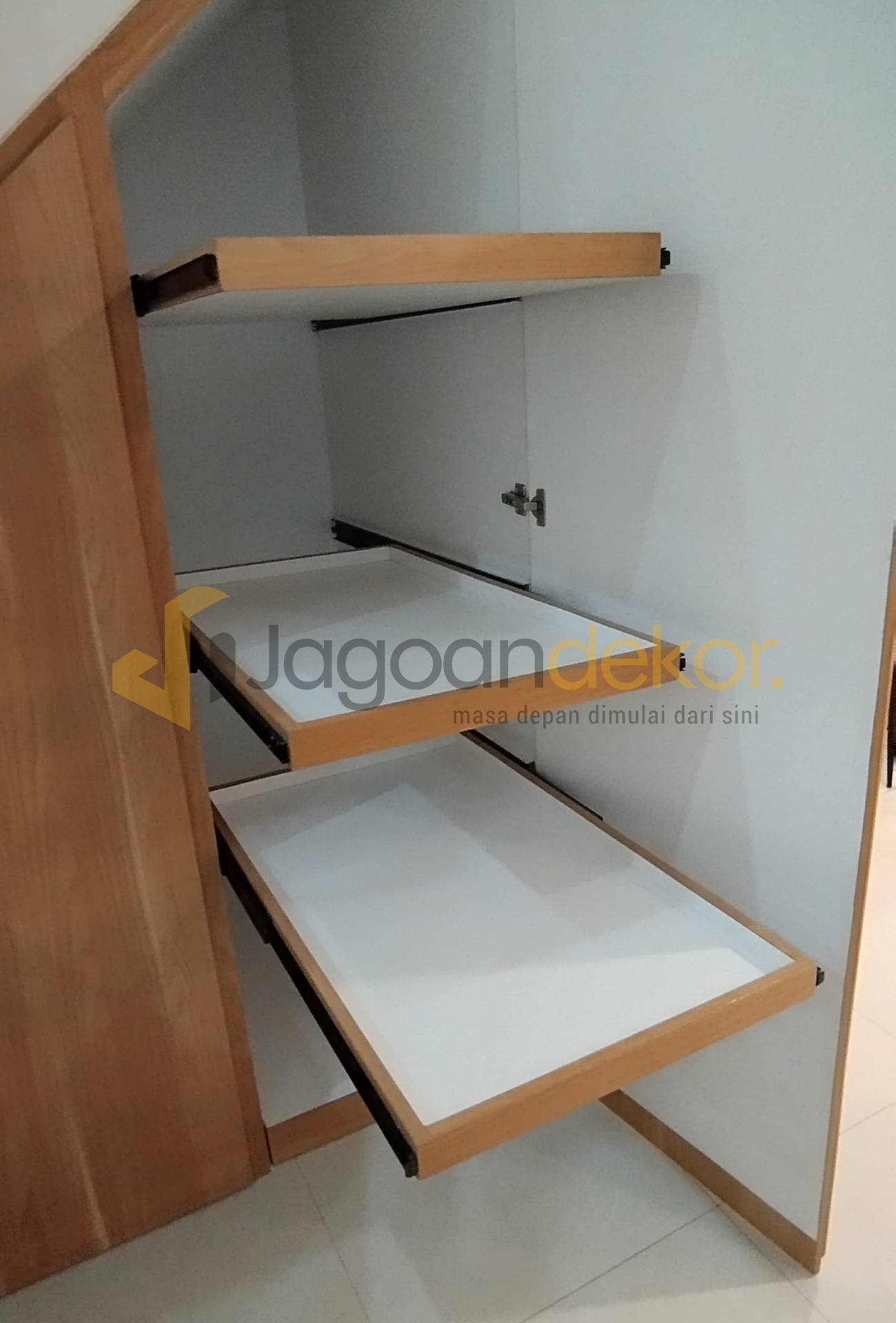 Lemari Bawah Tangga Motif Kayu Blockboard Finishing HPL - Bapak David