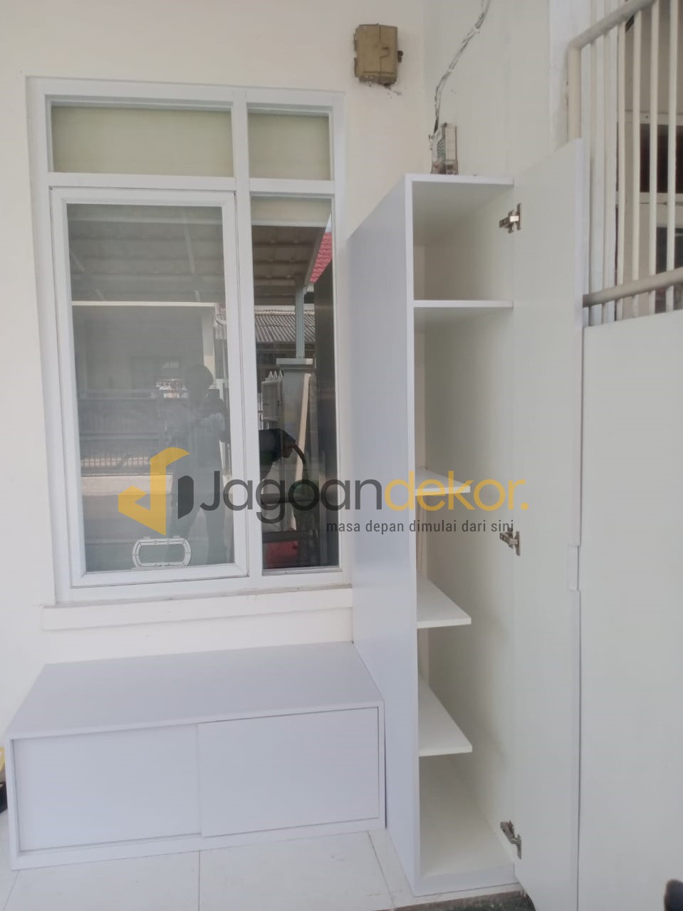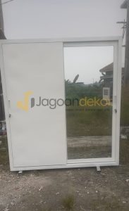 Rp9.250.000Harga aslinya adalah: Rp9.250.000.Rp8.500.000Harga saat ini adalah: Rp8.500.000.Lemari Sliding Door Pintu Kaca Letter L Blockboard Finishing HPL – Ibu Nona Marsya Frista