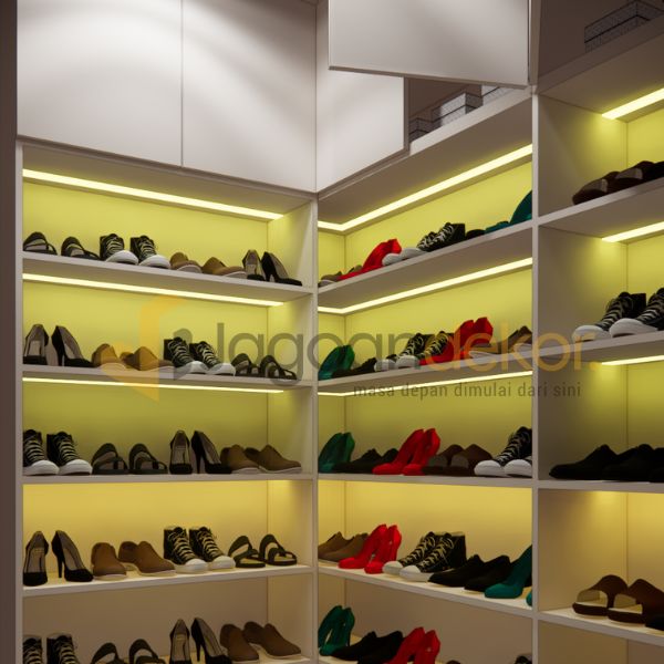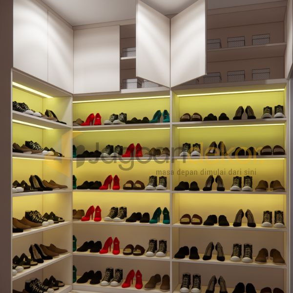 Lemari Wardrobe & Kabinet Sepatu Letter L Full Ceiling – Ibu Rolita