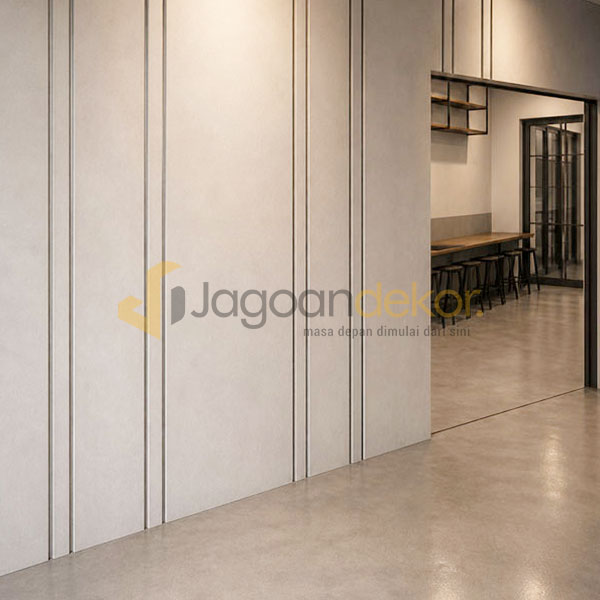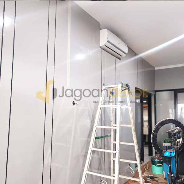 Wall Board Dengan Motif Tali Air Grey Glossy Bahan Blokmin Finishing HPL  - Bapak Dede